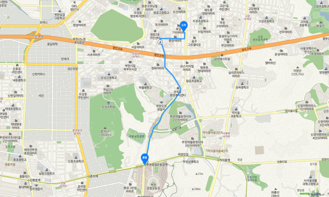 부천종합운동장역 하차 후 75번 버스 오시는 길