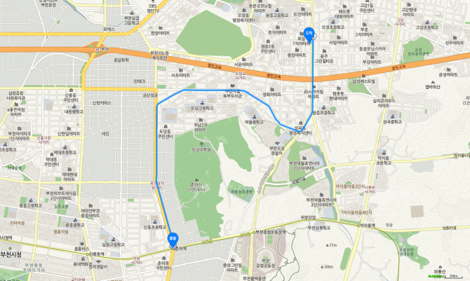 소사역 하차 후 95번 버스 오시는 길