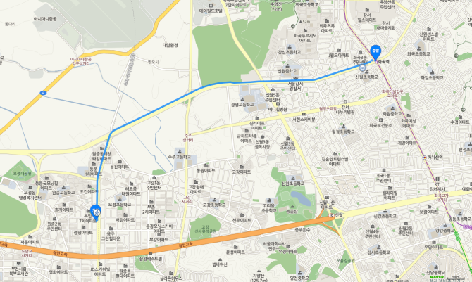 화곡역 하차 후 661번 버스 오시는 길